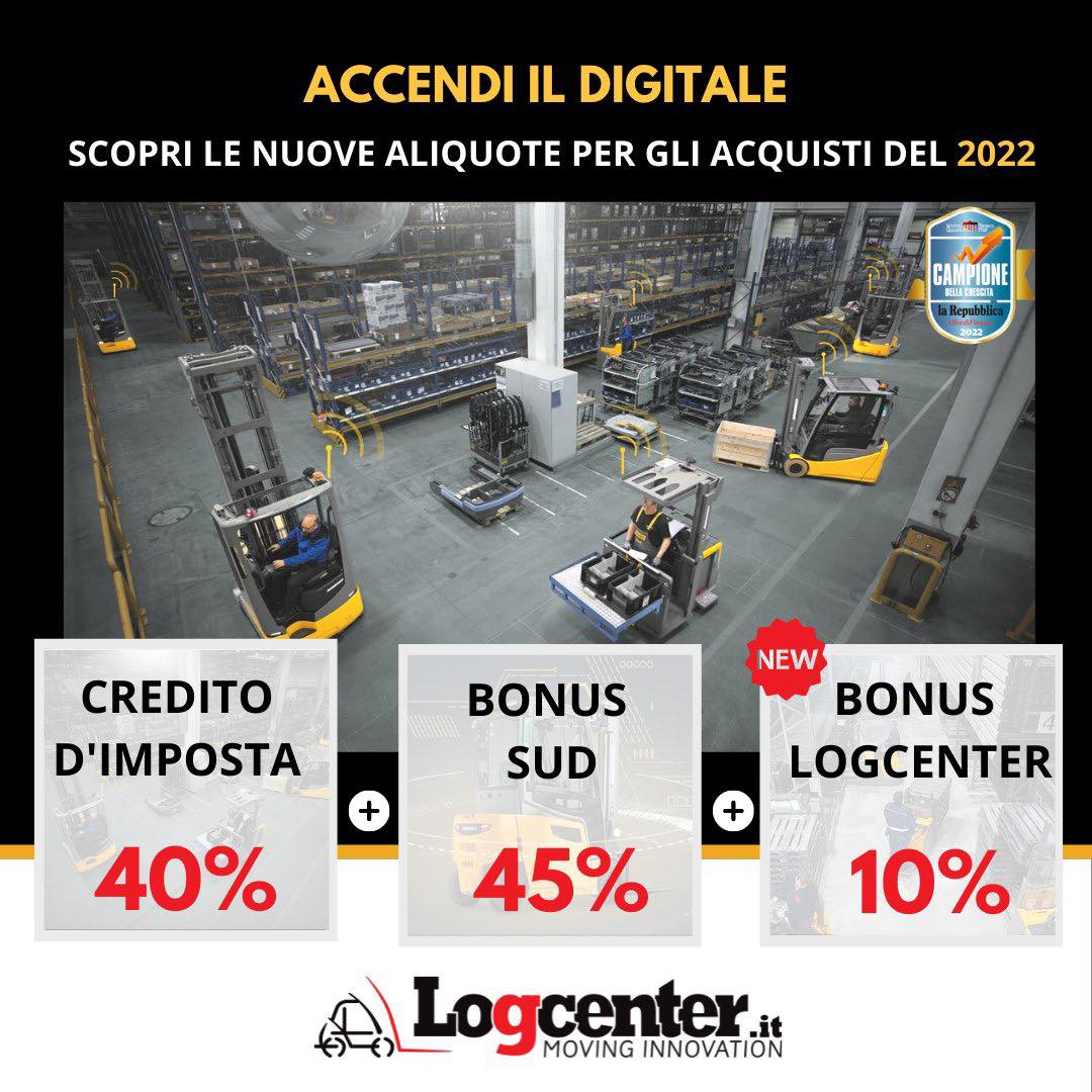 Centinaia di imprenditori stanno aderendo all'offerta di LOGCENTER per ottenere gli unici CARRELLI ELEVATORI CON I 5 REQUISITI NECESSARI per beneficiare delle agevolazioni di INDUSTRIA 4.0.